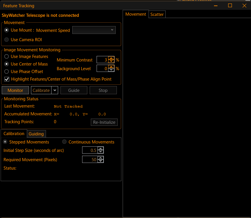 Monitor→Calibrate→完了後Guideで追尾が開始されます。他のサイトなどでも細かく解説しているので詳細は割愛します。
