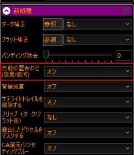 - Reset stack after # timelapse frames…スタックをリセットするタイミングを指定しています。この設定は経緯台の為の設定かと思っていましたが、スタックをするための基準点がちょっと動いた場合など、この設定が活きてくるようです。当方はスタック後比較的すぐリセットするようにしています。