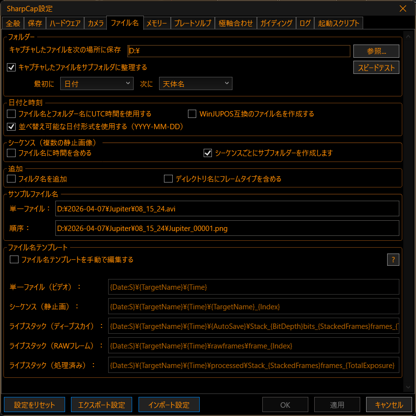 事前準備① SharpCapの設定