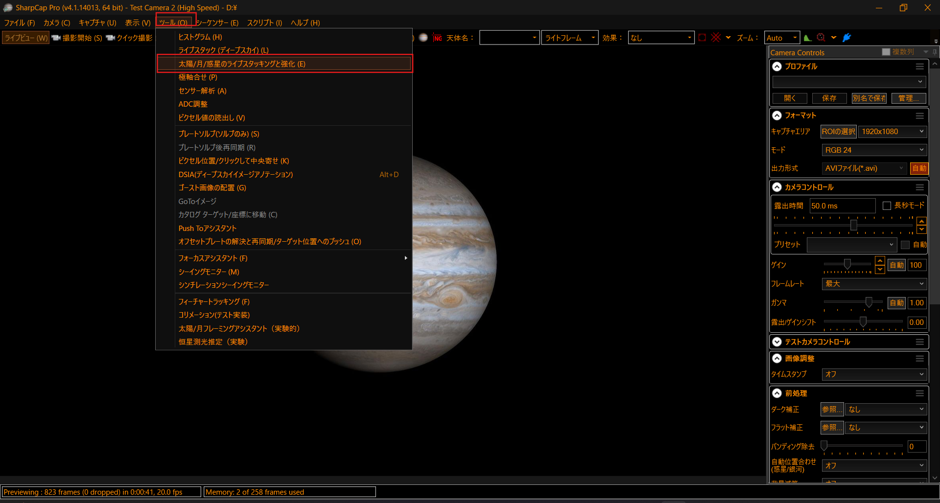 今日は最初に紹介した「太陽/月/惑星のライブスタッキングと強化」に含まれるタイムラプス機能の使い方のメモを書いておきます。